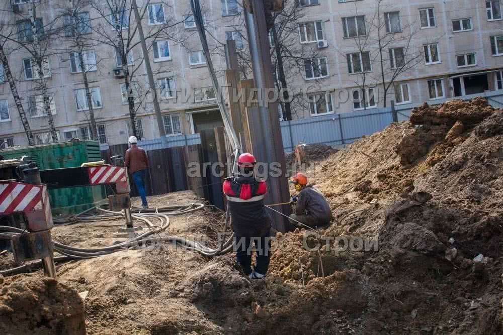 Устройство шпунтового ограждения из шпунта Ларсена методом вибропогружения на объекте строительства административного здания в г. Москва, ул. Байкальская, 42.