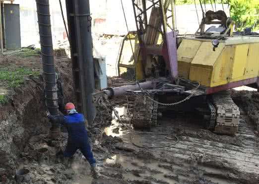 Суть этого способа в предварительном бурении ведущей скважины, которая делается диаметром меньше, чем диаметр завинчиваемой трубы, на которую заранее наваривают спираль. Например, для труб диаметром в 300 мм делают отверстия диаметром 275 мм. Дыры бурятся шнеком, закрепленным на буровом вращателе, затем шнек снимают, на его место ставят трубу с резьбой и ввинчивают ее в отверстие. Забуривание трубчатого шпунта позволяет сделать конструкцию максимально прочной и надежной.